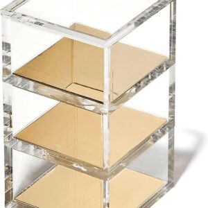 OfficeGoods 3 Tier Stackable Acrylic Organizer w/Gold Base – Functional & Elegant Desk Organizer for Office or Home – Helps Keep All Your Little Bits Together – Gold/Square