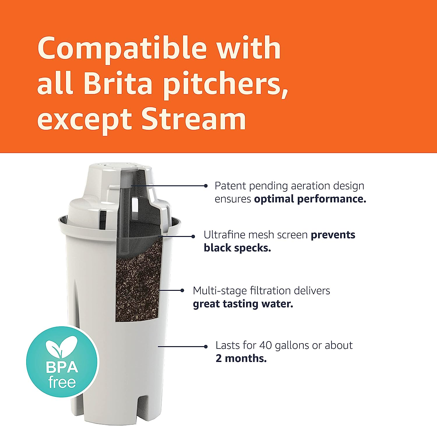 Amazon Basics Replacement Water Filters for Pitchers, Compatible with Brita, 3-Pack