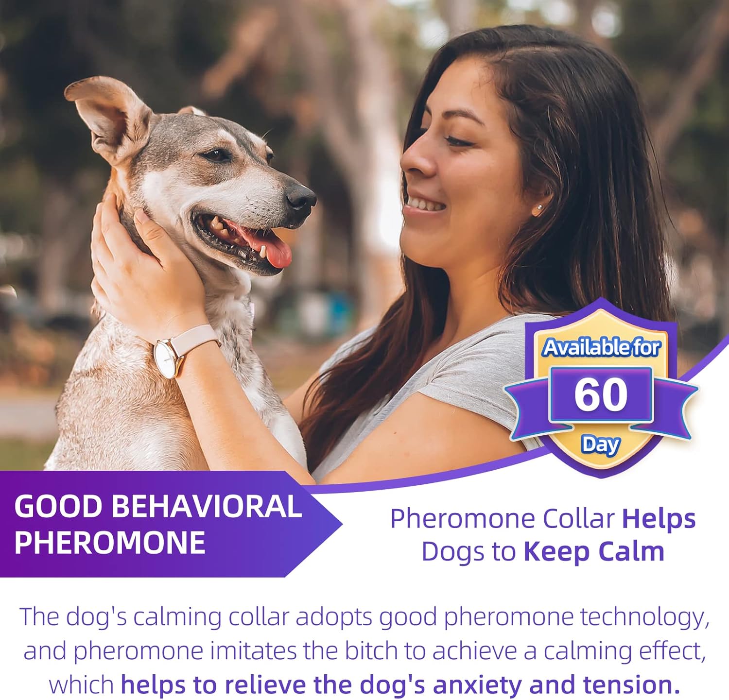 Calming Collar for Dogs 3 Packs, Dog Anxiety Relief, Pheromone Dog Calming Collar, Adjustable Relax Comfortable Collar Separation Design for All Small, Medium, and Large Dogs (Purple)