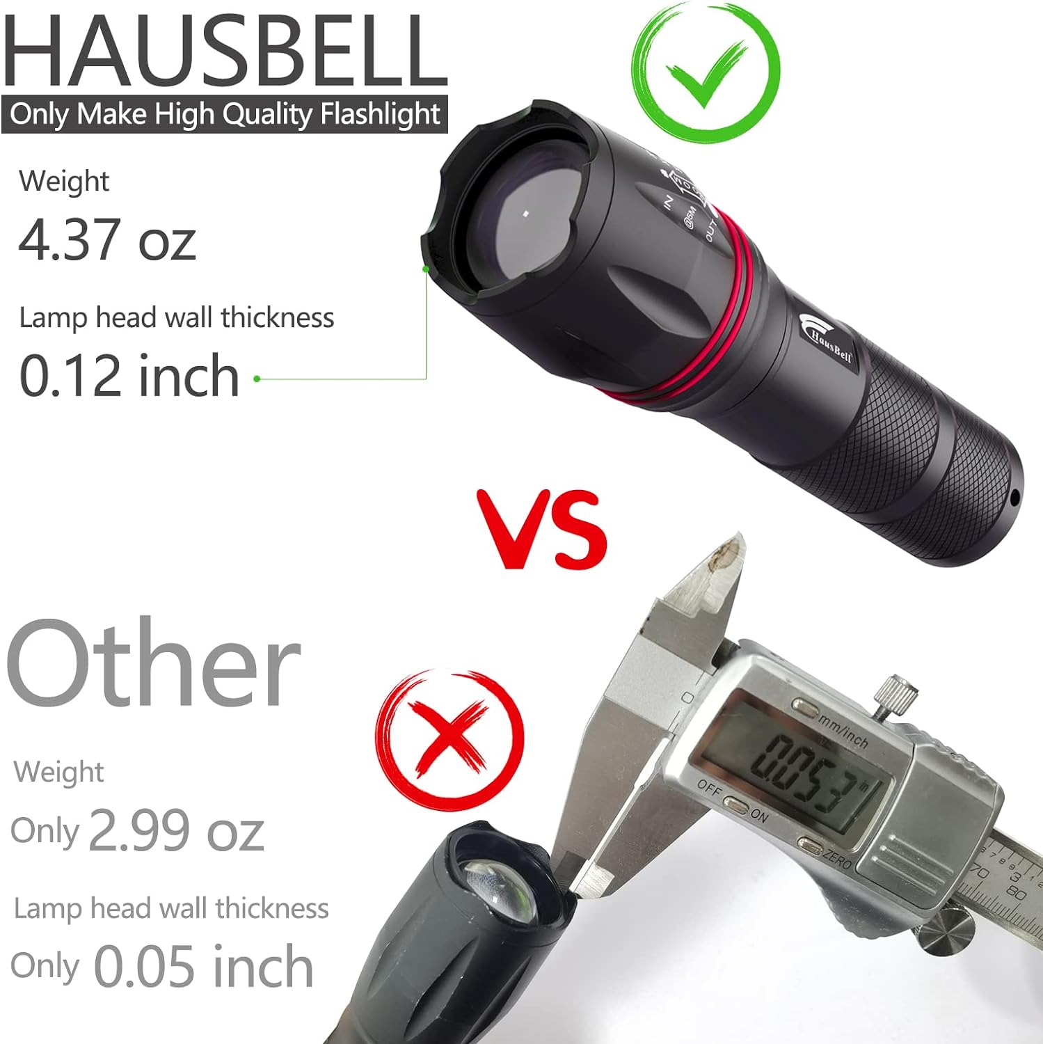 HAUSBELL LED Flashlight 2Pack High Lumens,Bright, Zoomable, Waterproof, Powerful, Emergency Tactical A100 LED Flashlights for Home and 5 Modes, Flashlight for Camping Gear?Hiking?Walking?2Pack?