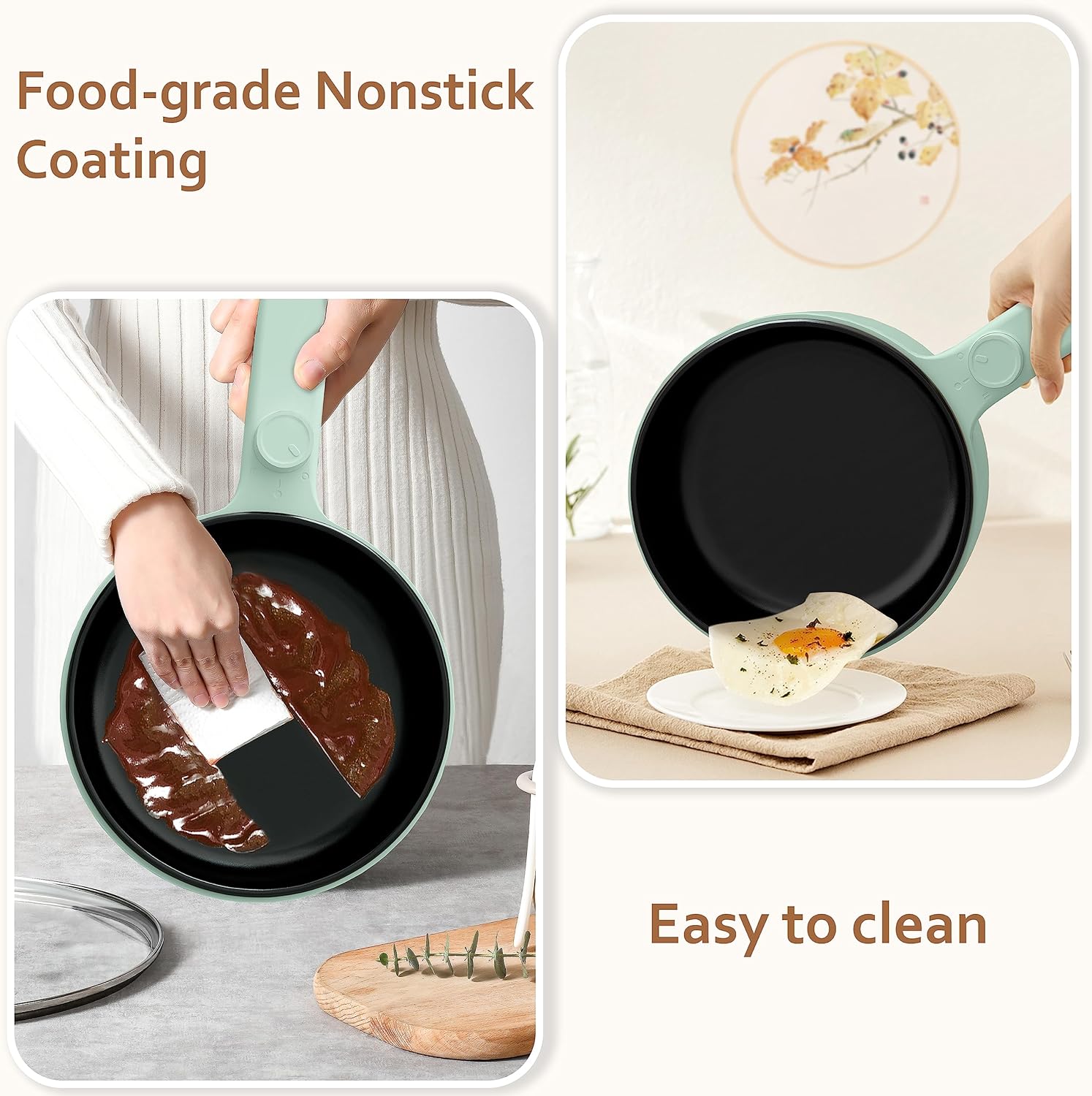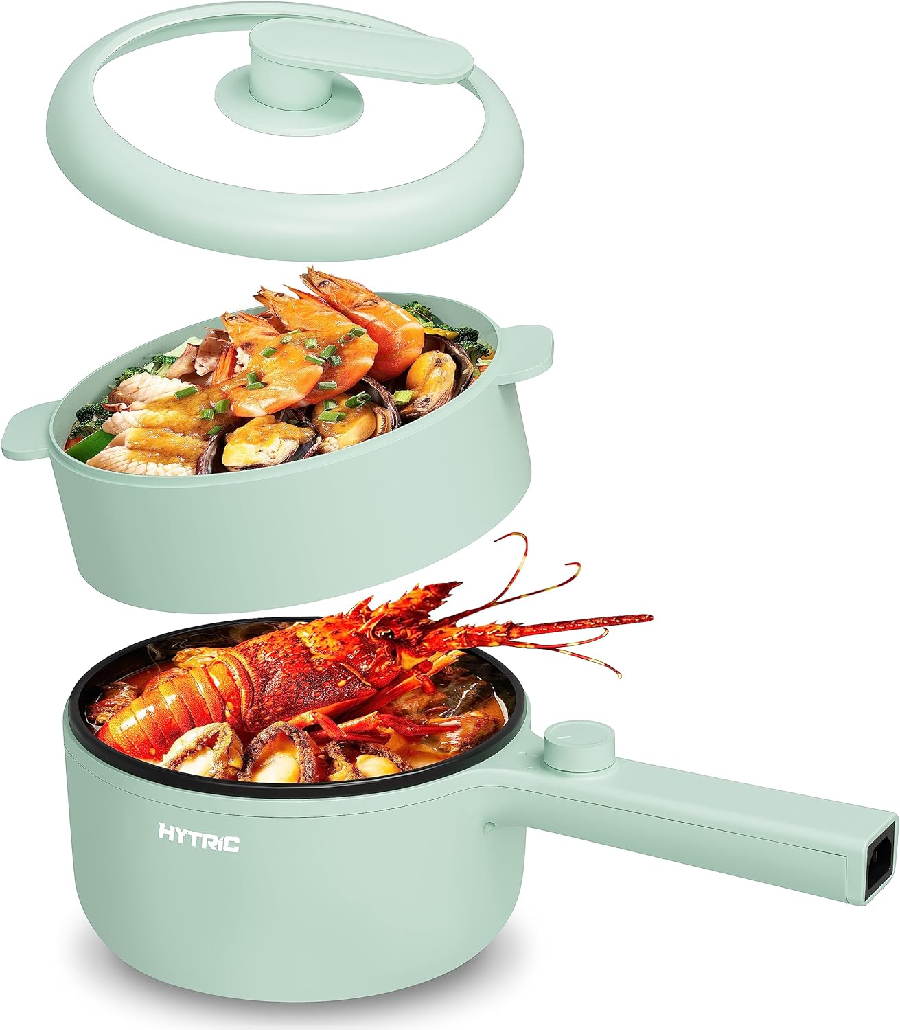 HYTRIC Electric Pot with Steamer New Upgrade, 1.5L Portable Nonstick Frying Pan, Electric Cooker for Steak, Egg, Pasta, Ramen Cooker with Dual Power Control, Mini Pot for Dorm, Office, Green