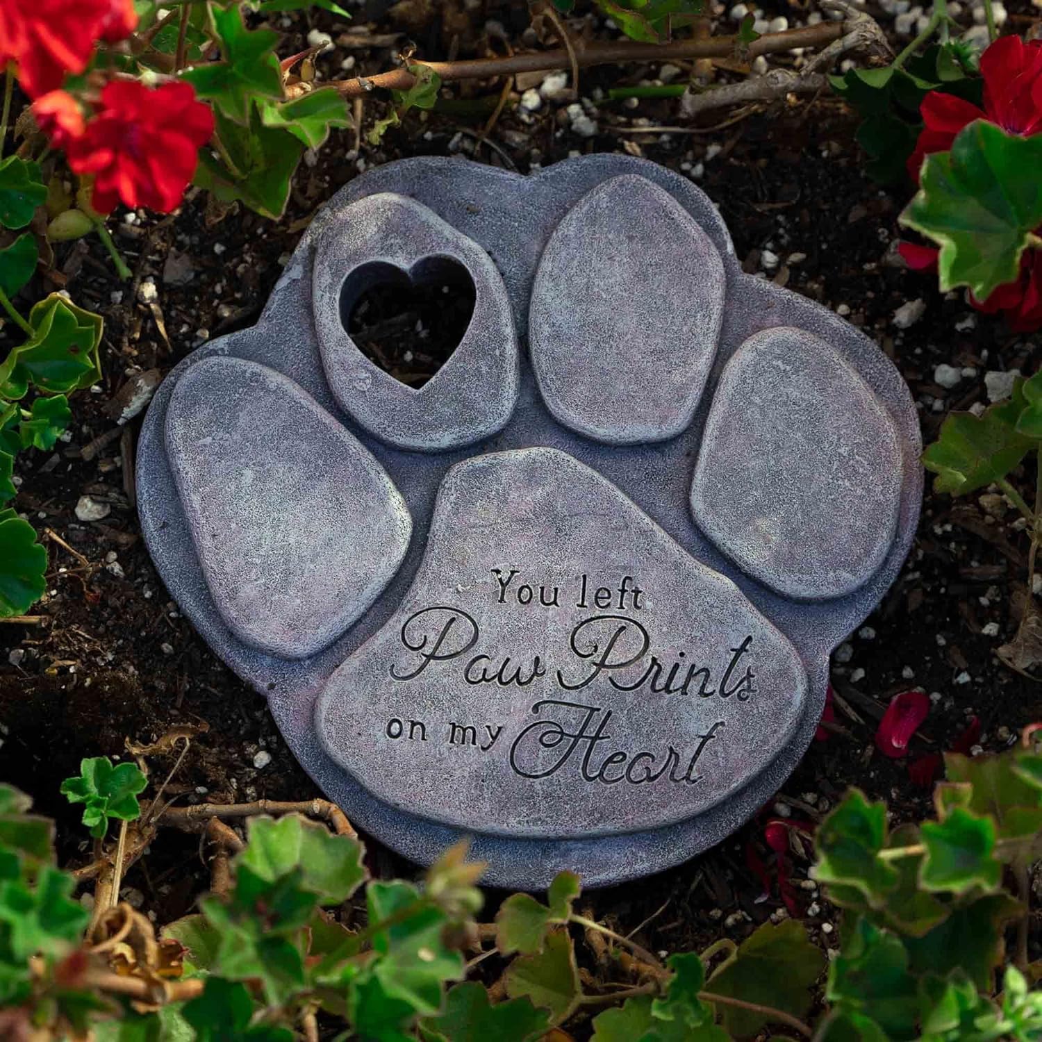 iHeartDogs Pet Memorial Garden Stone – ‘You Left Paw Prints On My Heart’ – Dog or Cat Bereavement Loss Gift
