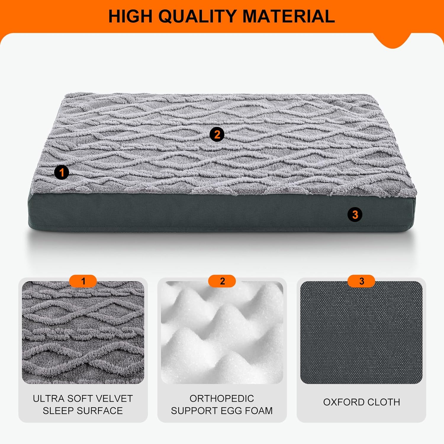 INVENHO Dog Bed for Extra Large Dogs, Soft Plush Orthopedic Dog Bed, Waterproof Dog Crate Bed with Removable Cover and Nonskid Bottom, Egg Crate Foam Pet Bed Mat, Machine Washable (44″x32″x3″)