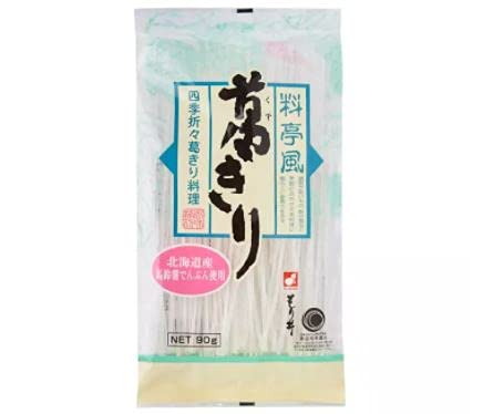 Morii Kuzukiri Japanese Kudzu Starch Noodle 90g – Suitable for Steamboat. Boil with hot water for 3min and rinse with cold water. Drain off water and cook with meat, fish and veg.