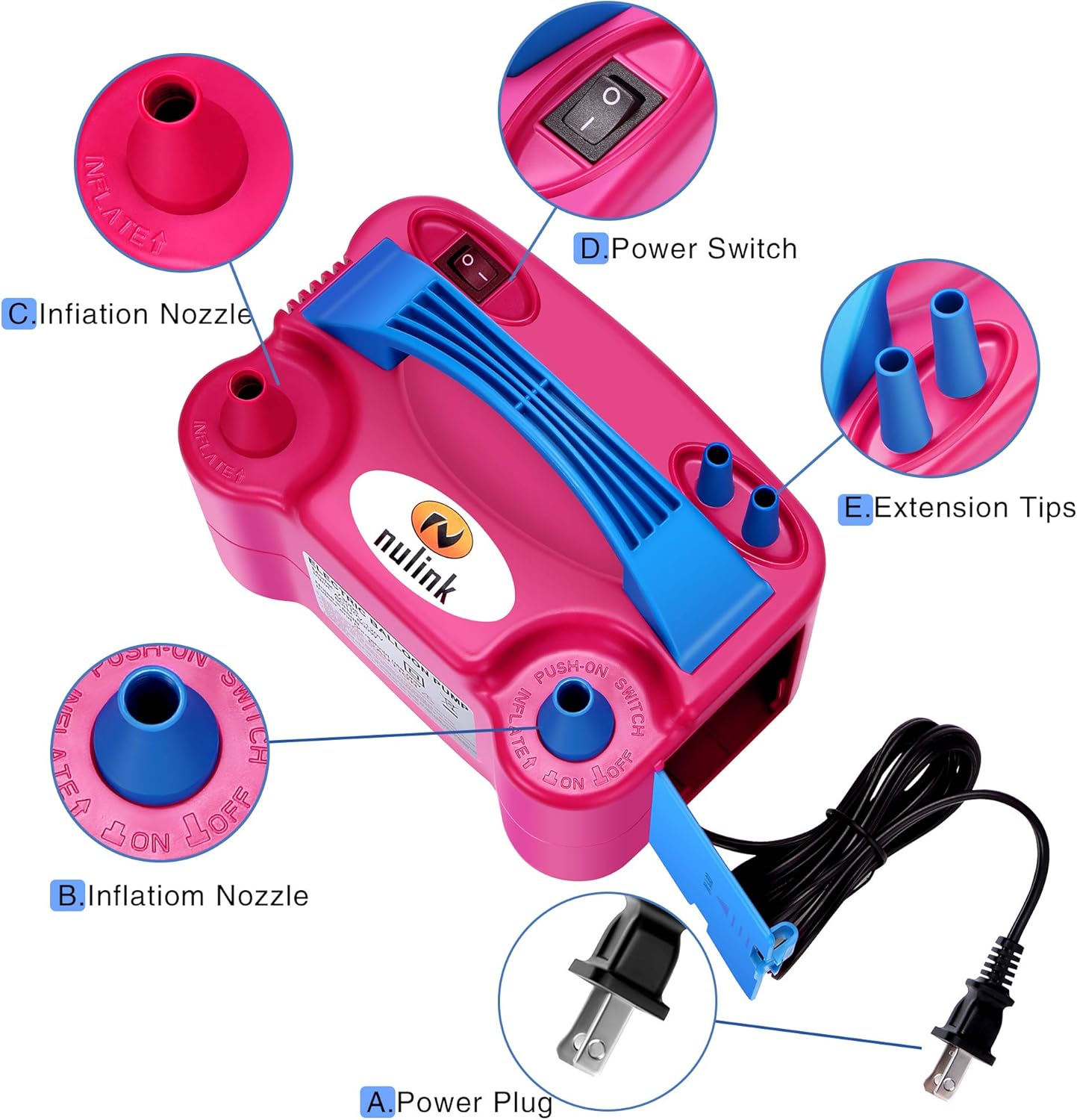 Be the first to review “NuLink Electric Portable Dual Nozzle Balloon Blower Pump Inflation for Decoration, Party [110V~120V, 600W, Rose Red]”