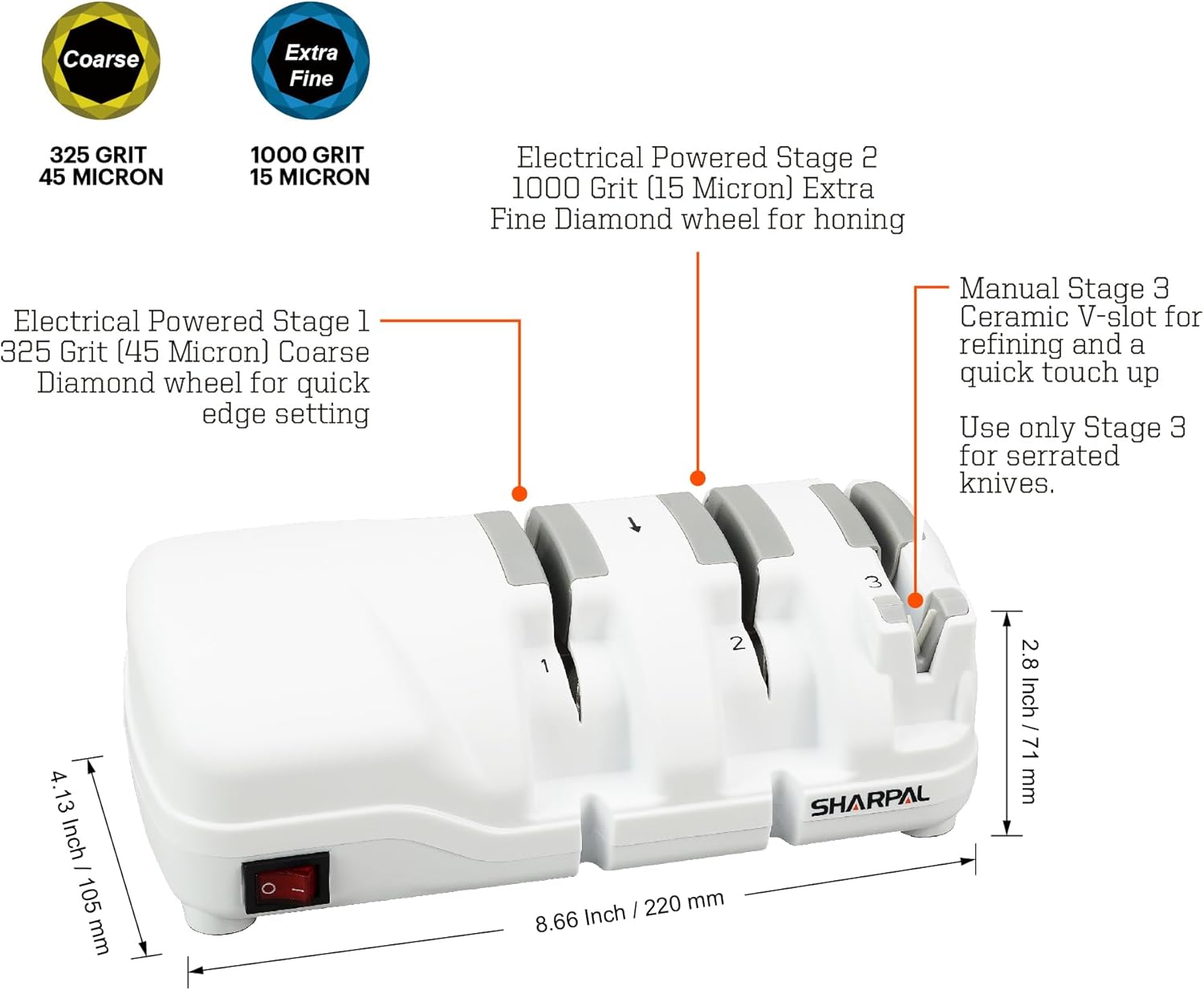 Be the first to review “SHARPAL 198H Electric Knife Sharpener – 3 Stage Professional Knife Sharpening System with Diamond Wheels, Sharpening Double-Beveled Straight Edge and Serrated Knives, Quick Razor-Sharp Results, 65db” Cancel reply