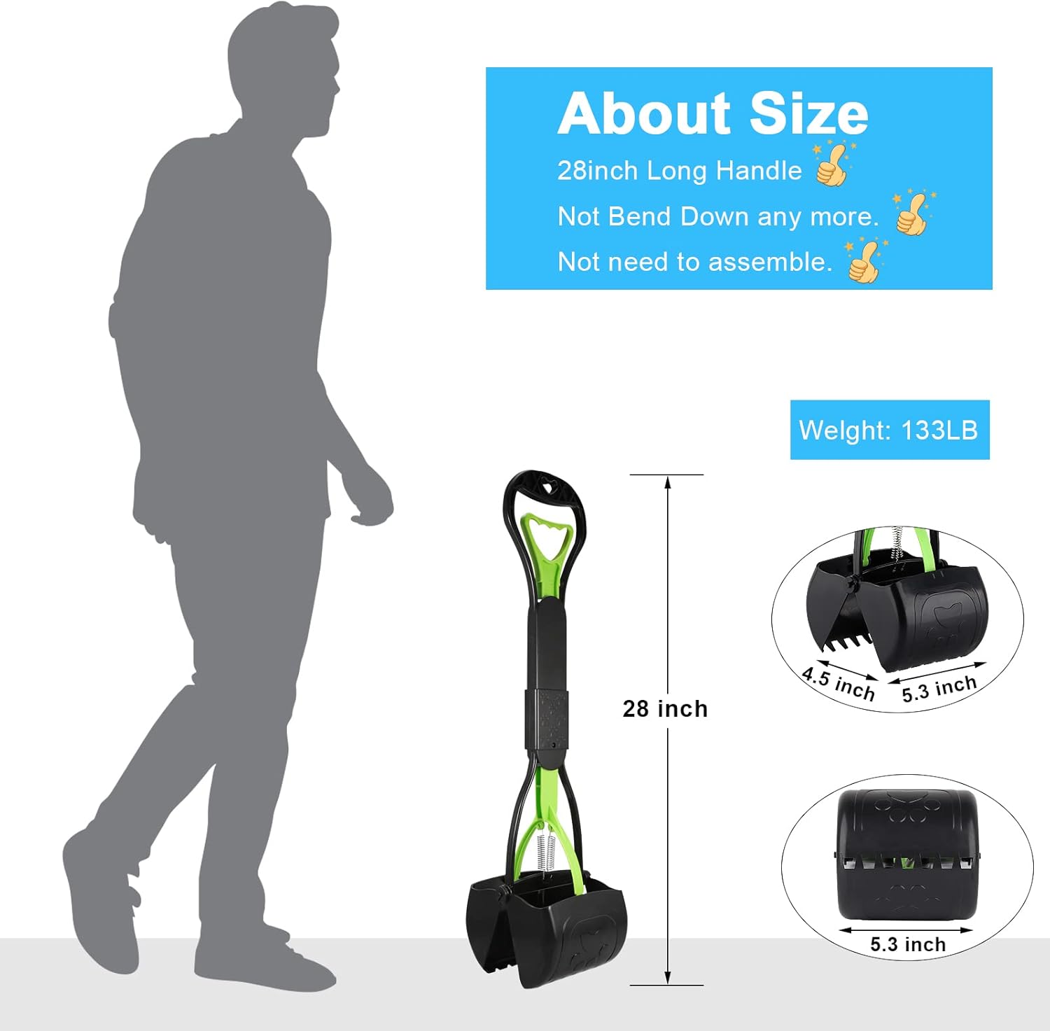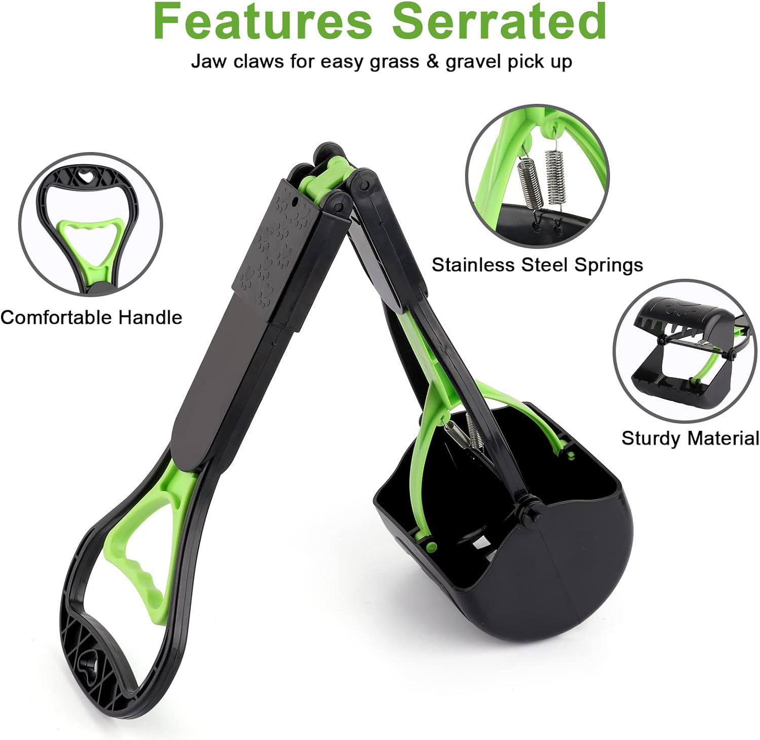 Sunkoon 28inch Non-Breakable Pooper Scooper for Dogs, Long Handle Foldable Portable Dog Scooper with High Strength Durable Spring, Easy to Pick Up for Grass and Gravel